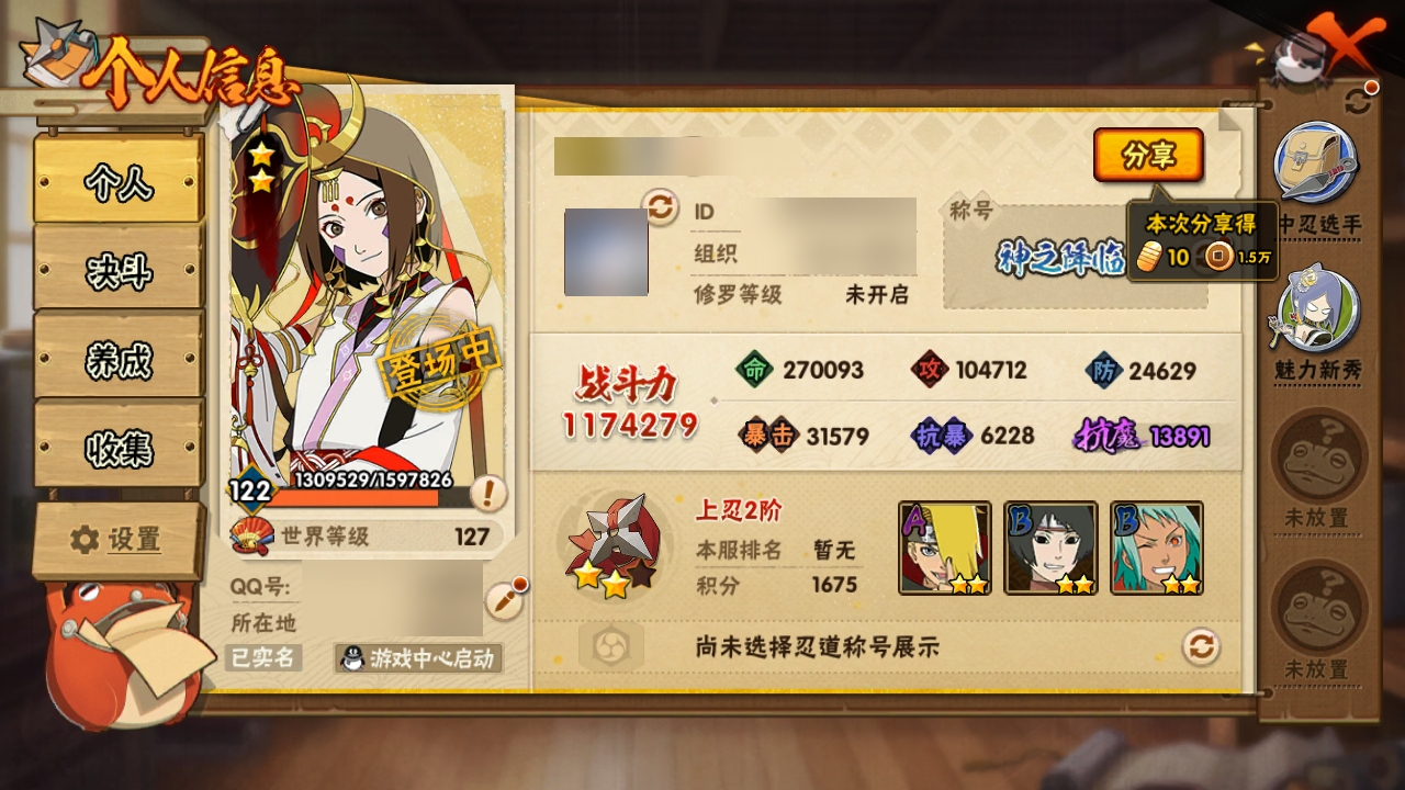 【C2512259809】[7870922]693DB7可二次3S,11A,V1,战力117W,10通灵 战力值(万): 117 S级忍者: 佩恩「天道」,波风水门,自来也 「舞之豪杰」 通灵兽: 忍犬,忍龟,蛤蟆吉,蓝蛇,猿魔,蛤蟆仙人,镰鼬,山椒鱼,蜃,砂之守鹤