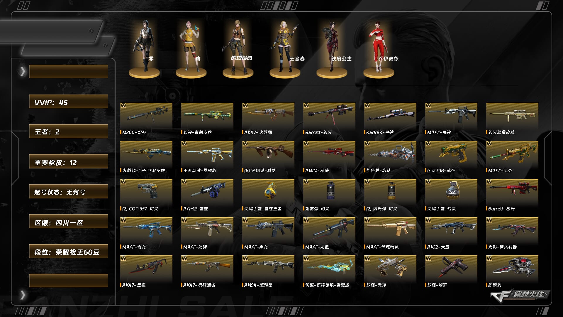 【C2534903444】[14594802]XH9380/【钱包已递交强制】/西部/四川一区/可排位/【荣耀枪王60豆】【Lv.100 高阶大元帅】VIP6/44V/幻神/幻神青鹤/星神/【裁决三件套】/裁决/裁决音效卡/裁决胜者为王/裁决流光秘银/青龙/王者芳薇/COP幻灵/*2/6烈龙/斯太尔枪娘暗刃/【音效卡】/极光音效卡/毁灭音效卡/黑龙音效卡/加特林炼狱音效卡/【1个四防角色】/王者春/【其他角色】/鹰/零/战地猎狐/乔伊教练/【玩偶武器】/白虎迷你小艾/雷神小红/金色蔷薇空/迷你宝贝///各种道具、饰品/细节看图/【此账号未被封过十年】