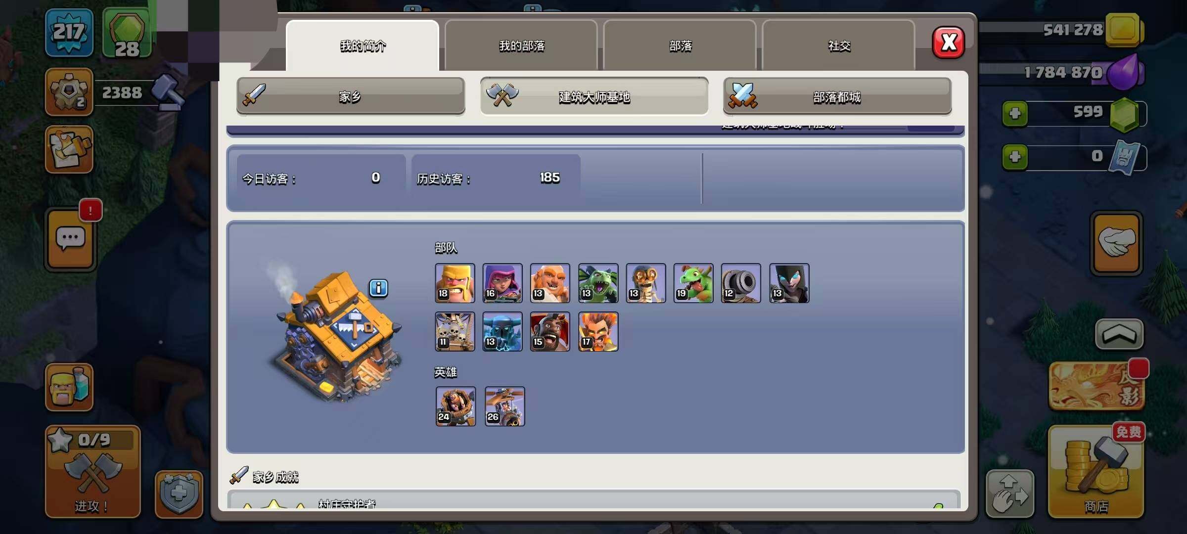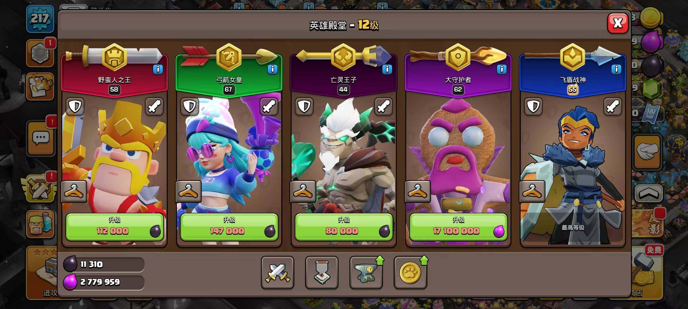 【C263083226】【BLN590】等级217/22王皮/11场景/6农/英雄等级58-67-62-55/部落工坊/海上基地/冰天雪地/狂野丛林/幽静丛林/像素世界/原始秘地/皇家竞技场/魔法世界/复古年代/审判者蛮王/像素蛮王/魔法蛮王/律动蛮王/爆裂小队蛮王/燃情律动·女皇/惊魂女皇/弓道女皇/木偶女皇/暗黑亡灵女皇/海上女皇/矿工女皇/智将守护者/姜饼守护者/圣诞守护者/Clash-A-Rama战神/动漫战神/派对战神/冰雪战神/凛冬战神/土蛇王子
