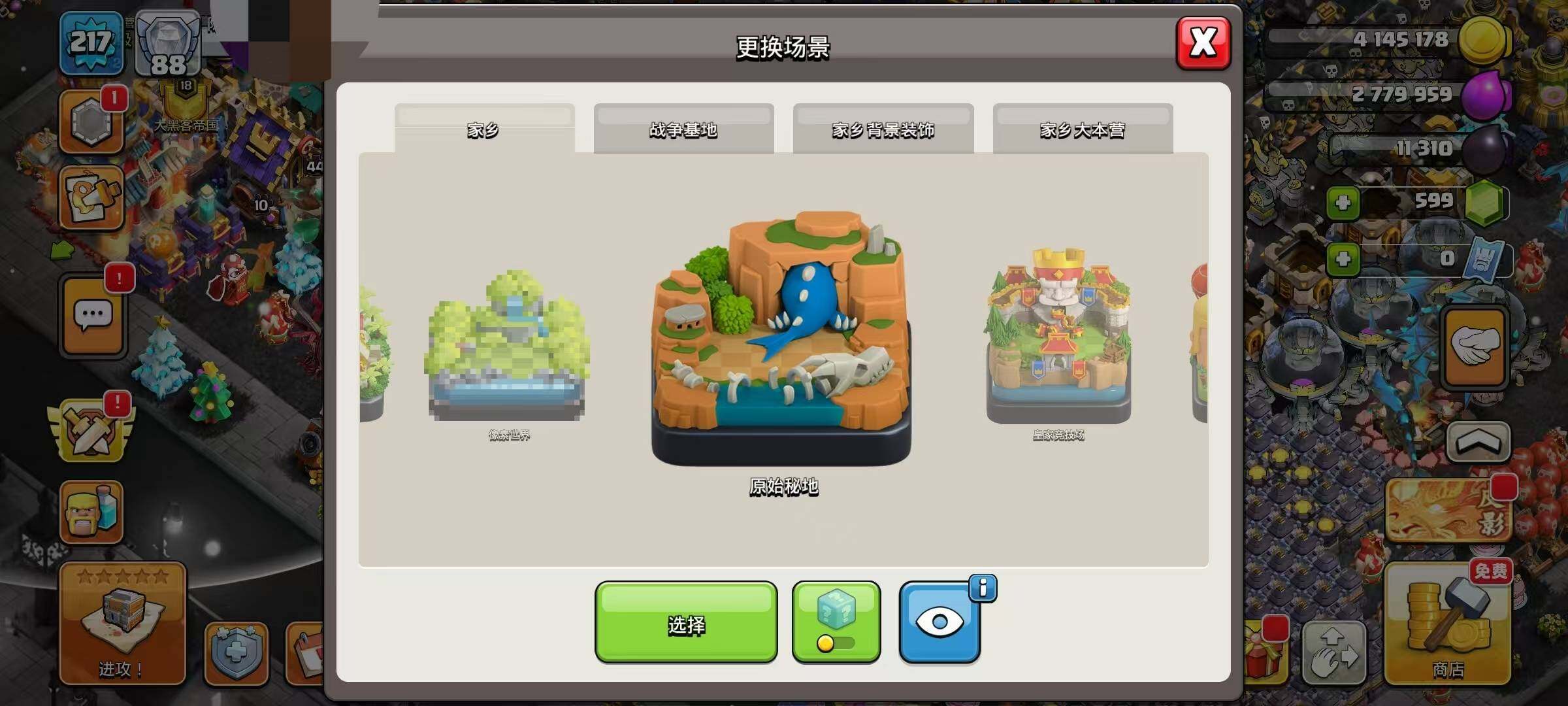 部落工坊,皇家竞技场,原始秘地,像素世界,狂野丛林,海上基地,冰天雪地,魔法世界,幽静丛林