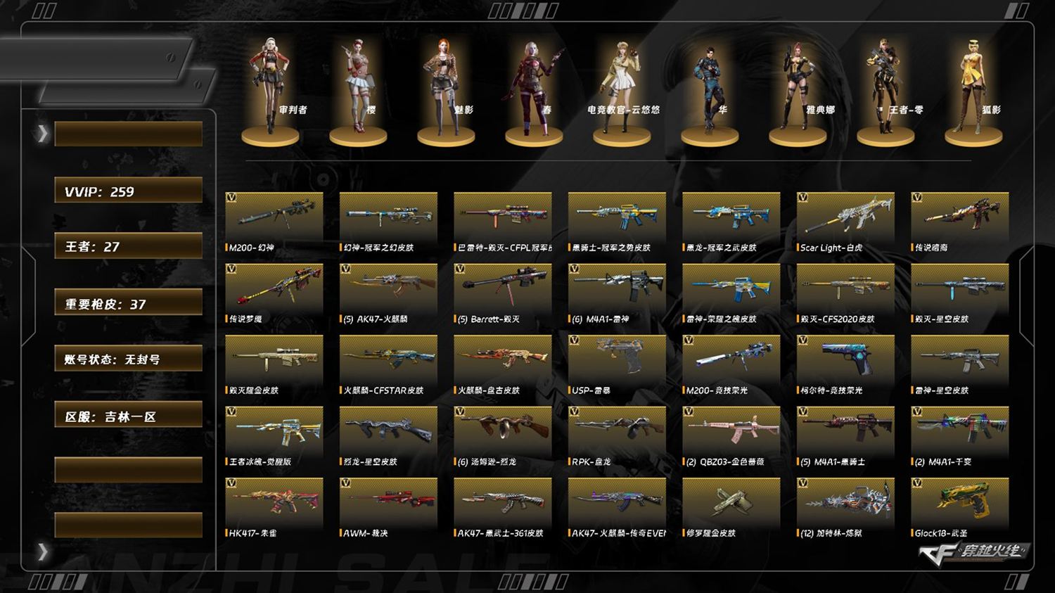 【C263331721】[16377606]LC7838/北部/吉林一区/可排位/263V/【/幻神三件套/幻神/幻神音效卡/幻神冠军之幻/】/LC200竞技荣光/王者星霆/觉醒版/裁决/传说暗裔/传说梦魇/QBZ金色蔷薇/金色蔷薇热带奇洋/QBZ天罚/QBZ天罚音效卡/【/白虎三件套/白虎/白虎音效卡/白虎热带奇洋/】/HK朱雀/6修罗/6炼狱/6烈龙/【/四防角色/电竞教官云悠悠/华/王者零国色天香/王者魅影/王者葵惊若翩鸿/灵狐者职业经理/】/COP雷霆/COP云龙/USP雷暴/柯尔特竞技荣光/毁灭音效卡/毁灭AG15冠军/极光音效卡/火麒麟音效卡/火麒麟盘古/火麒麟传奇EVEN/雷神音效卡/雷神白鲨14冠军/雷神荣耀之魄/黑骑士音效卡/黑骑士冠军之势/黑龙冠军之武/星神AG21冠军/雷神精英刀锋/火麒麟灵狐/裁决雪莉杨/毁灭孙三炮/LCK5炽火炎龙/牛牛AK/毁灭征服者超越LCAX/【无星神】/找回包赔