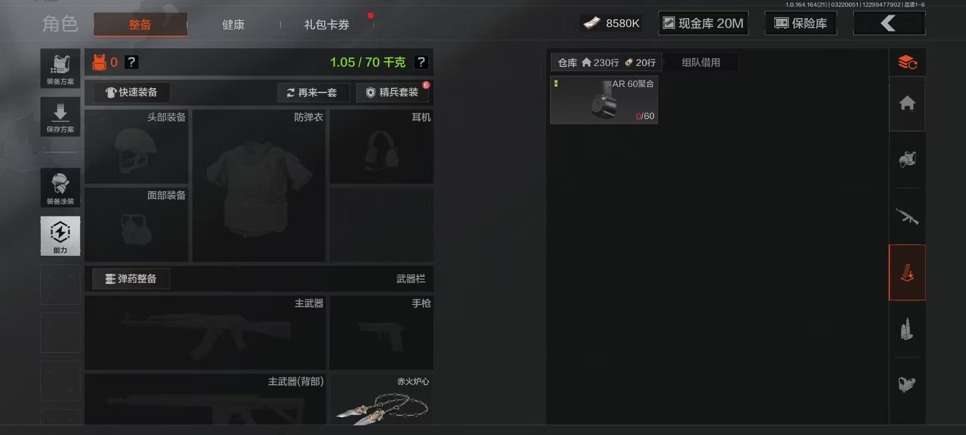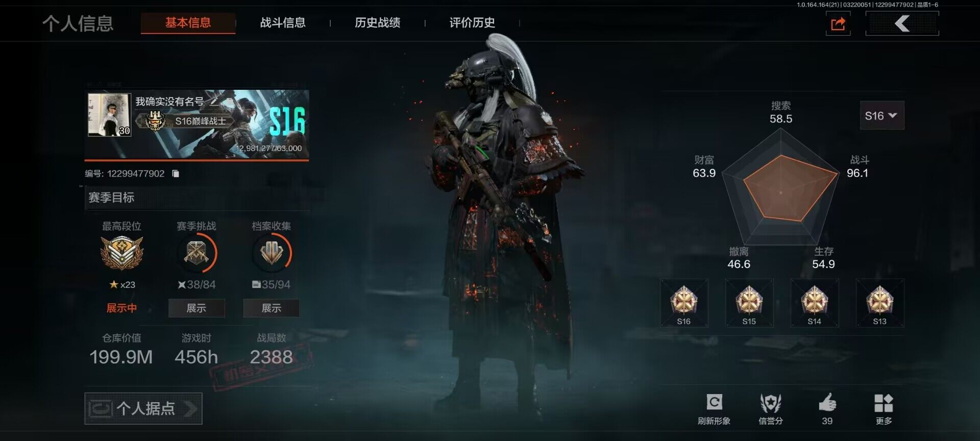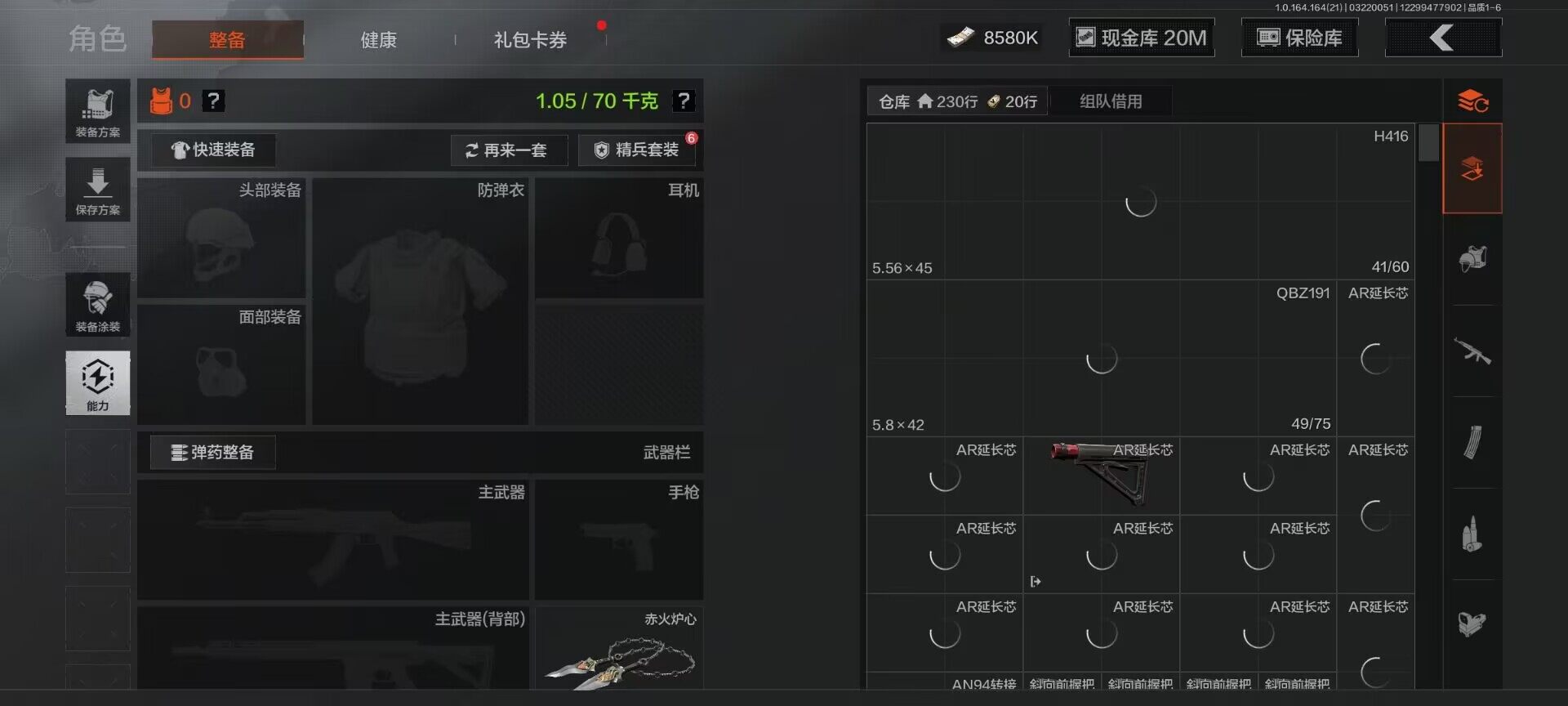 【C268062432】【AQQH895】等级:30/段位:暗区传说/仓库价值(百万):199.9/柯恩币:28580835/赤火炉心/秘密任务艾薇塔/竞技风潮M4A1/地脉深处FAL/镀火熔金H416/包络战术AKM/告丧夜曲AR57/百锻铁骑AEK/旧王圣谕QBZ191/利齿风暴MPX/旧王圣谕VSS/千炼铁阵MK14/长夜千军武将