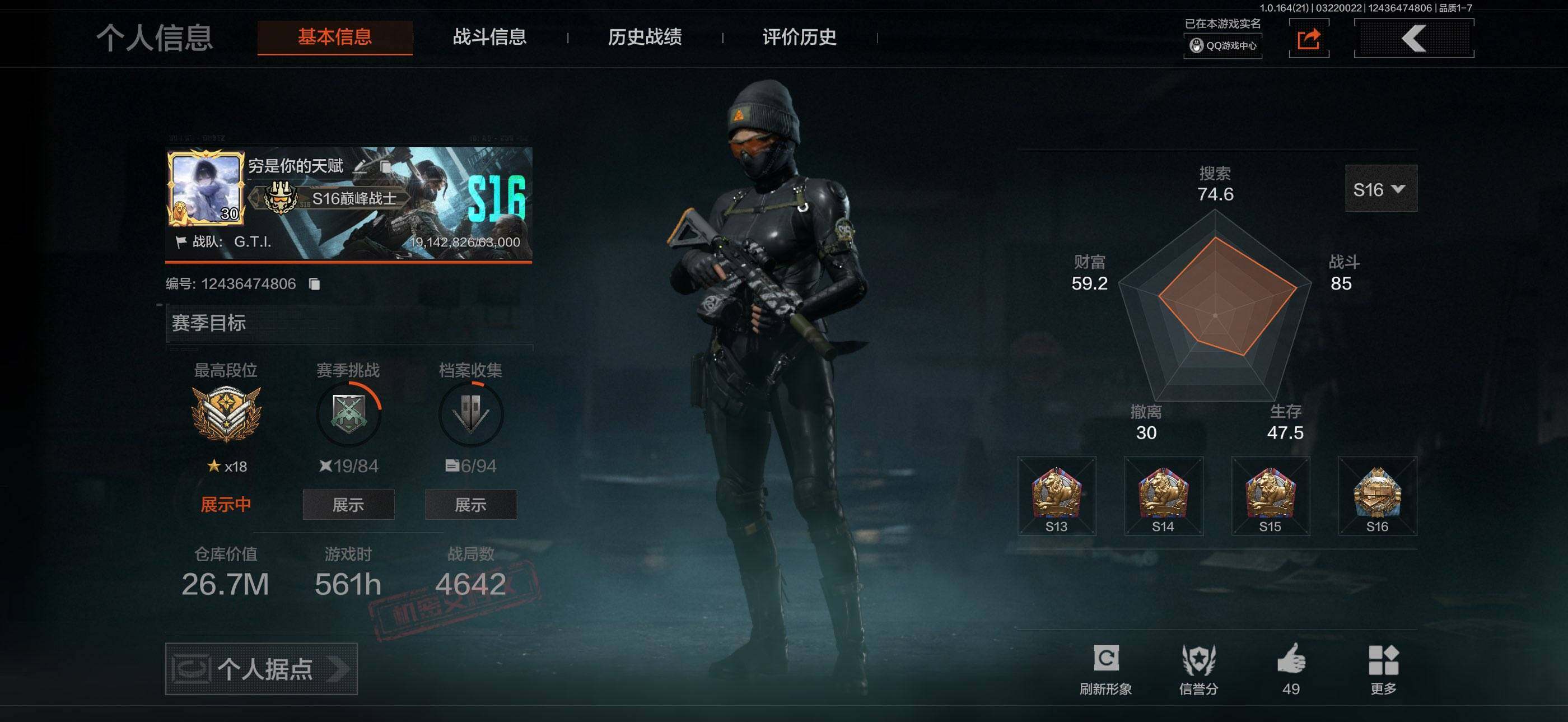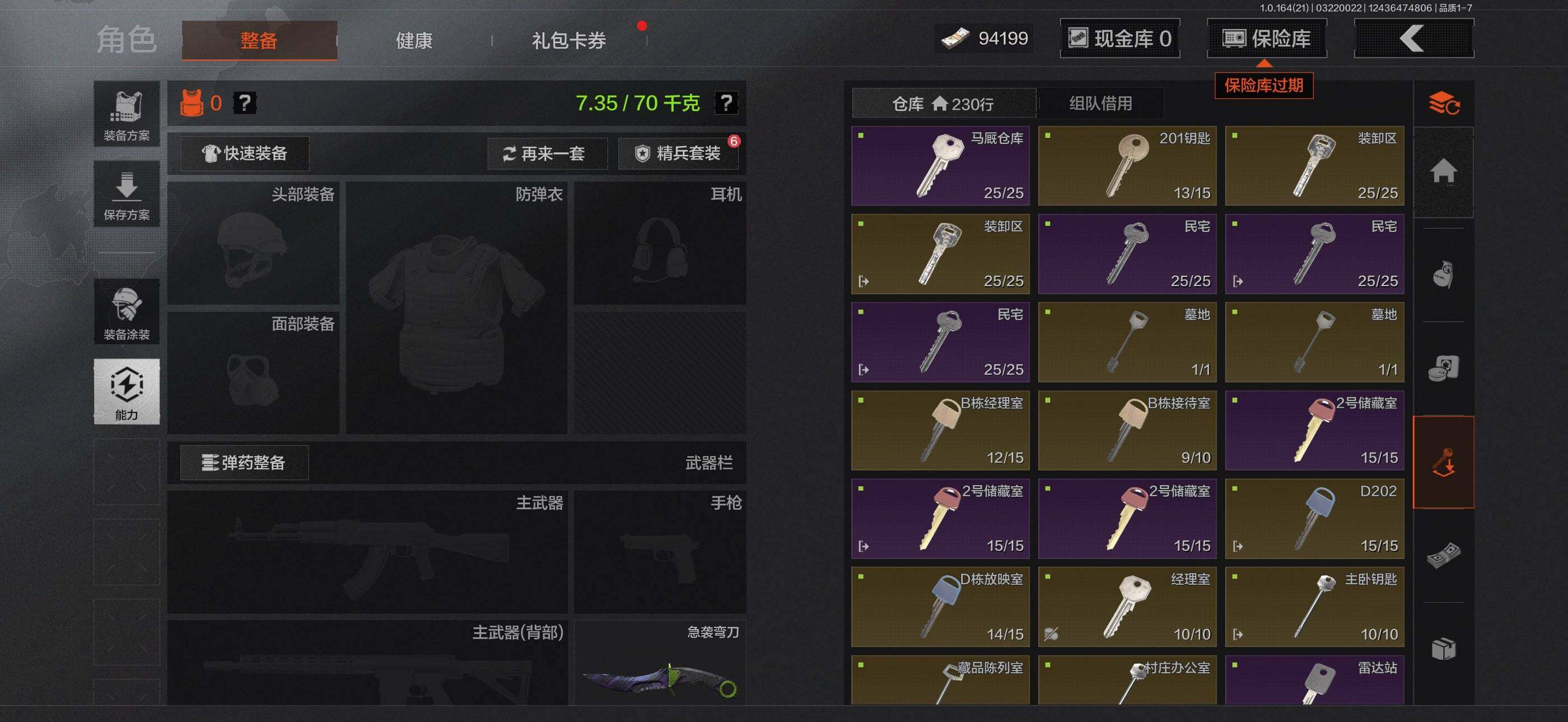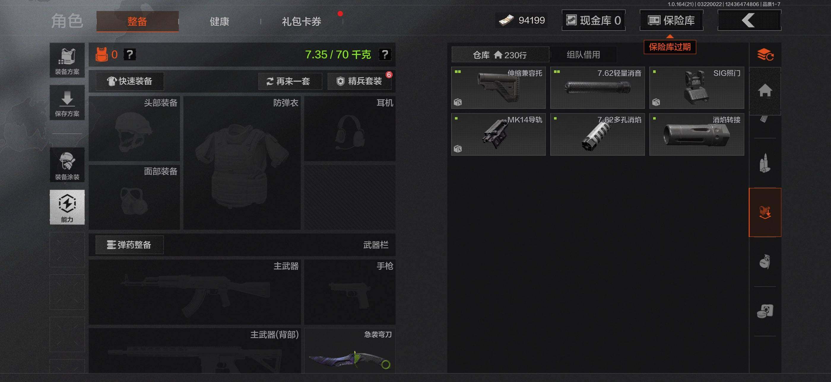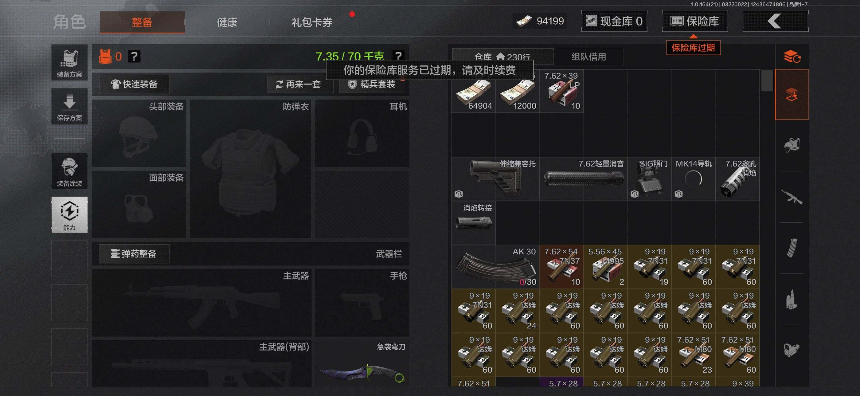 【C268055110】【AQQH899】等级:30/段位:暗区传说/仓库价值(百万):26.7/柯恩币:9075/急袭弯刀/赢家匕首/冥河/深潜行者II/近卫荣誉RPK16/赤帽要塞AR57/地脉深处FAL