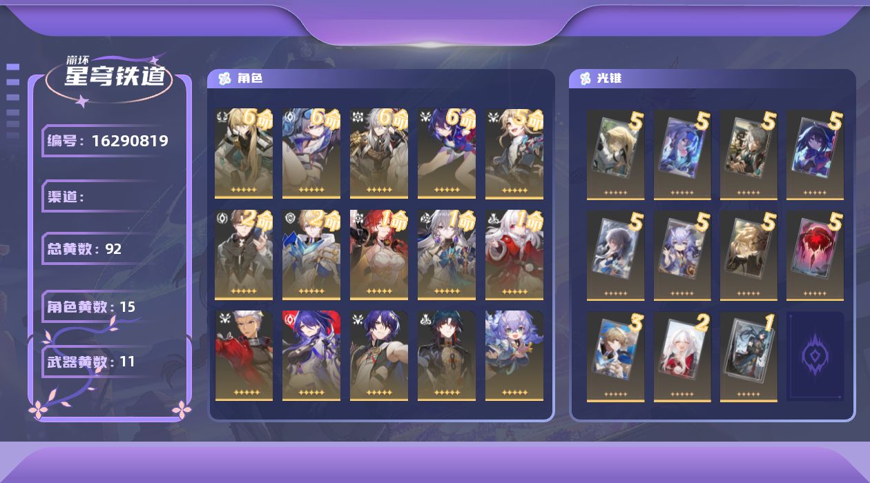 【5星角色12个】0命星期日,0命灵砂,0命椒丘,0命黄泉,0命知更鸟,0命真理医生,0命阮•梅,0命丹恒•饮月,0命彦卿,0命瓦尔特,0命银狼,0命Archer,