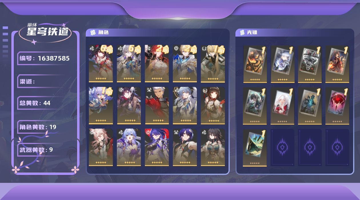 【C263484190】[16387585]0AE0GB总黄数44角色数量18武器数量8冒险等级