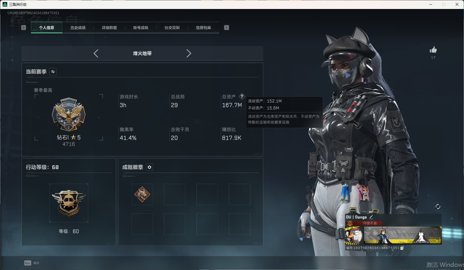 【C2520217414】可二次可修改实名实名:可修改烽火地带段位:无段位全面战场段位:无段位高级安全箱(6.30到期)总资产(M):4.9哈夫币:488.288传说武器皮肤:SCAR-H战斗步枪-水墨云图,AK-12突击步枪-夜鹰,M4A1突击步枪-蚀金玫瑰干员外观:红狼-蚀金玫瑰,骇爪-水墨云图