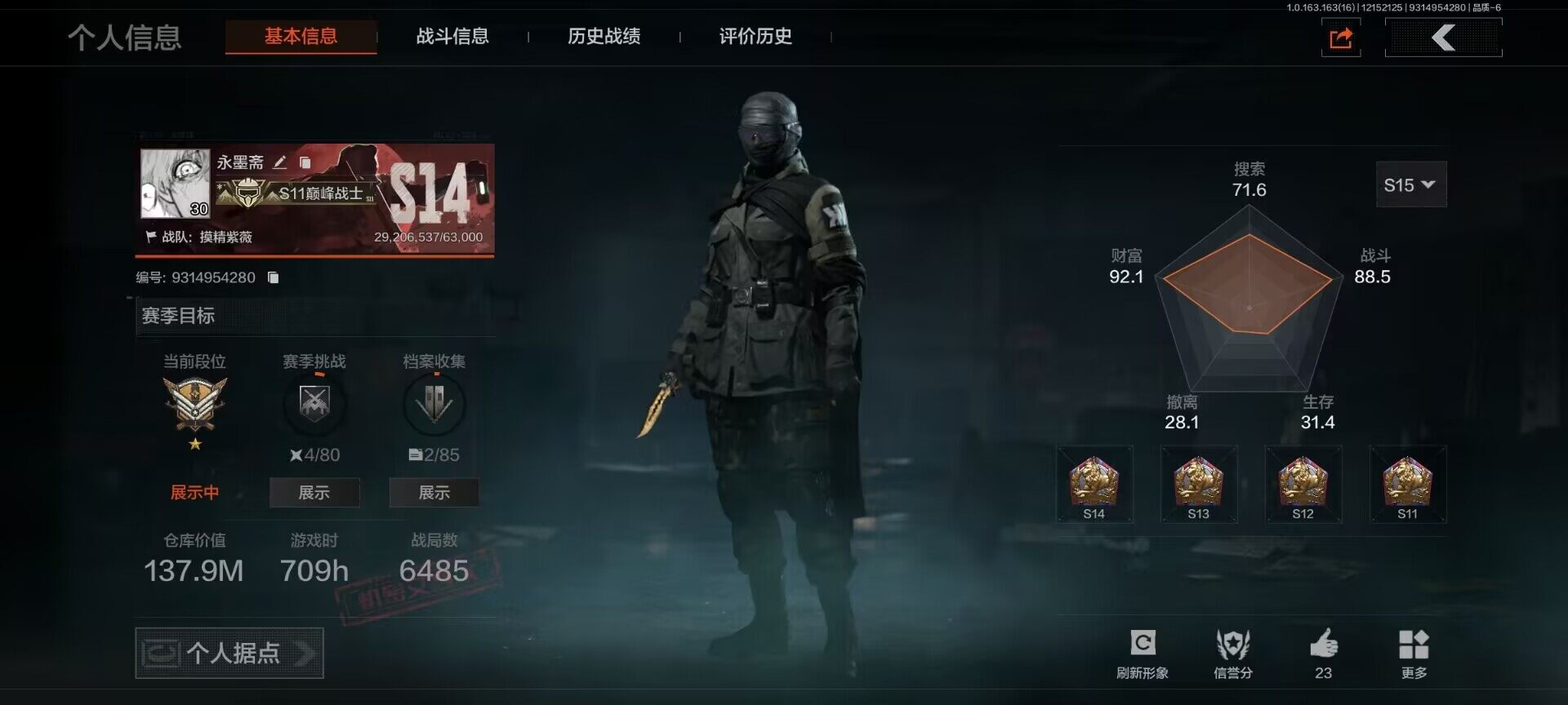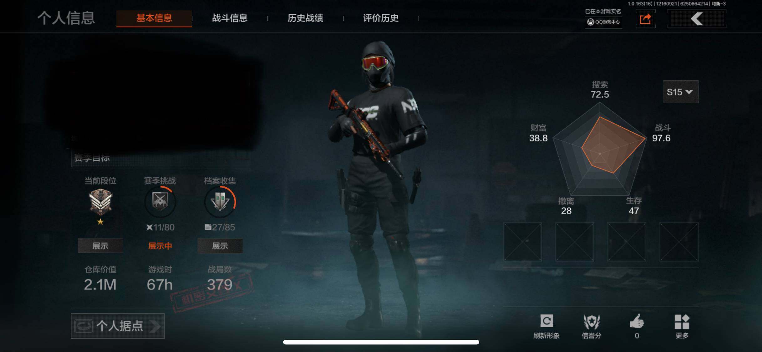 【C2534924094】【AQN56】等级:30/段位:王牌/仓库价值(百万):11/柯恩币:1254/突击匕首